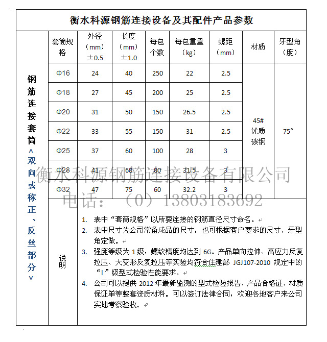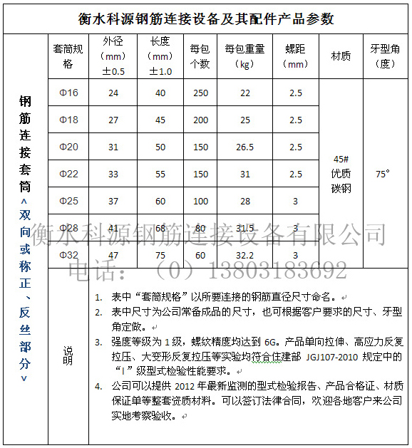 4、可連接橫、豎、斜向的HRB335、HRB400、HRB500同徑或異徑鋼筋。